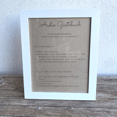 Of course, our audio guest books also include an instruction sign so that your guests know what they should do.